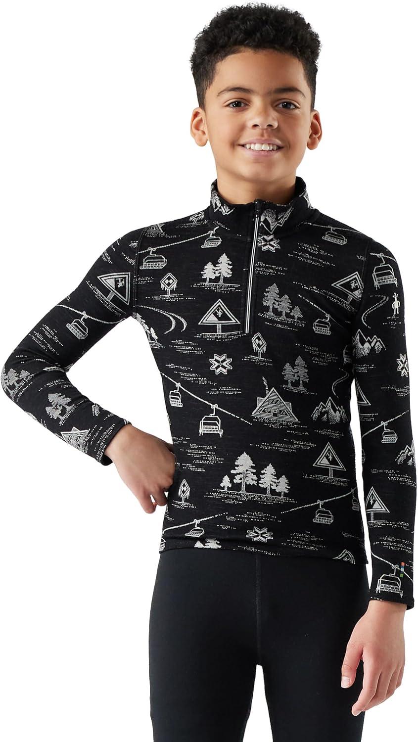 SmartWool Boys Classic Thermal Merino Base Layer 1/4 Zip (Toddler/Little Kid/Big Kid)(Black Ski Day)