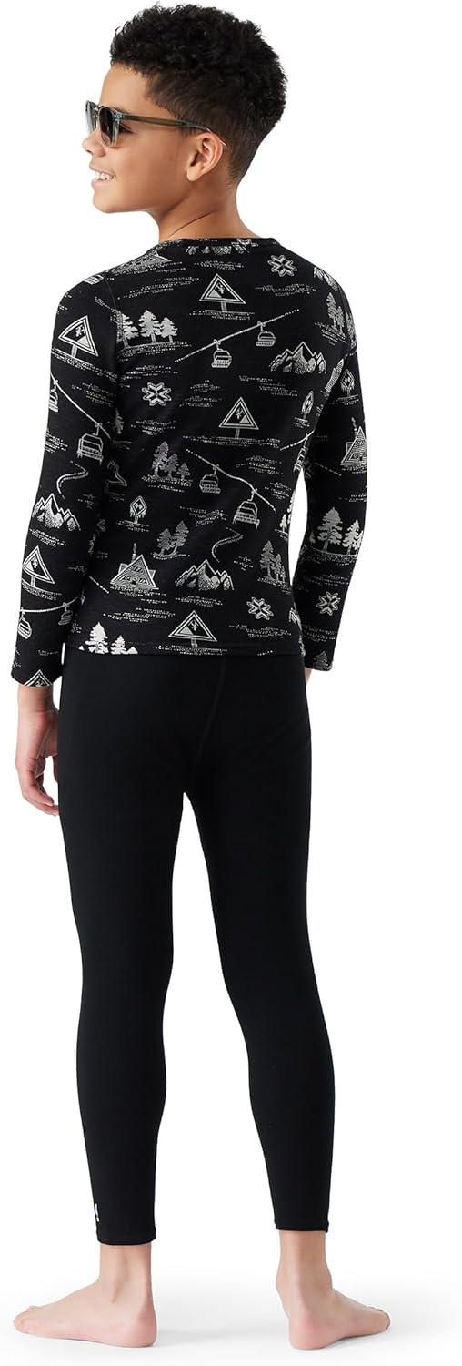 Smartwool Kid’s Classic Thermal Merino Base Layer Crew for Boys and Girls(Black Ski Day)