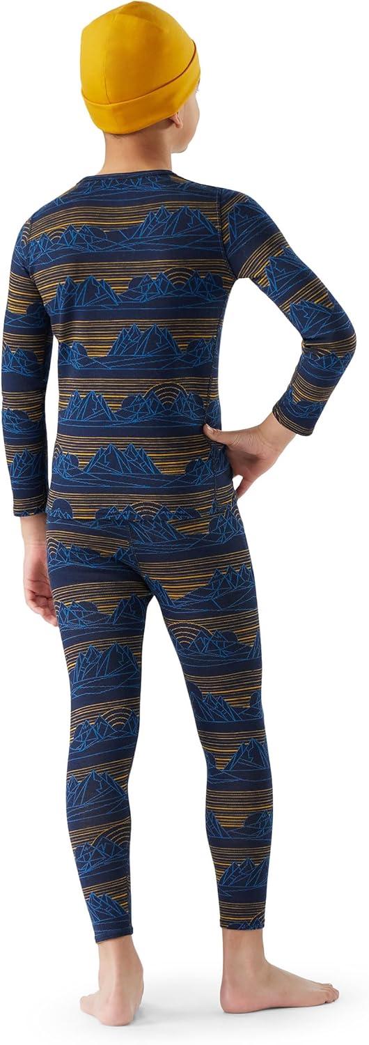 Smartwool Kid’s Classic Thermal Merino Base Layer Crew for Boys and Girls(Deep Navy Geo Peaks)