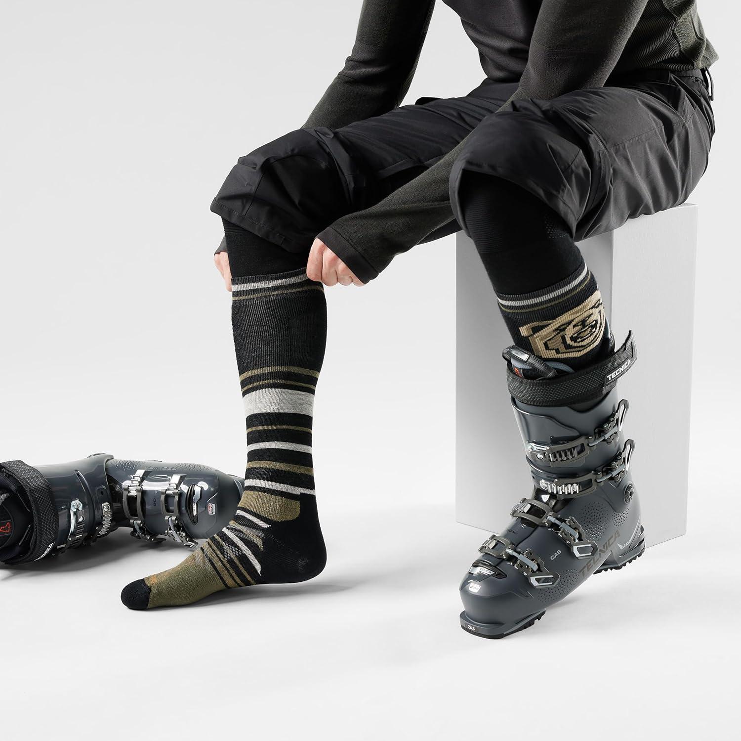 Our ski socks work to keep you comfortable and performing at your best in all conditions. 4 Degree Elite Fit System designed for a dialed-in, performance-oriented fit. Virtually Seamless toe for enhanced comfort. Merino wool helps manage moisture, regulate temperature, and resist odors. Indestructawool technology with extended durability zones.