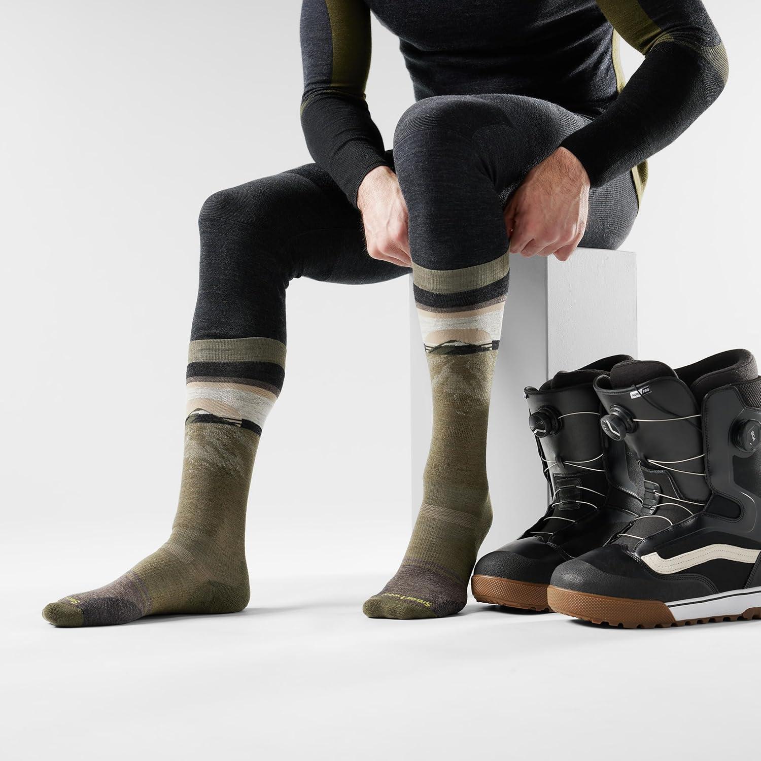 Smartwool Men’s Snowboard Targeted Cushion Mountain Sunrise Over The Calf Socks(Winter Moss)