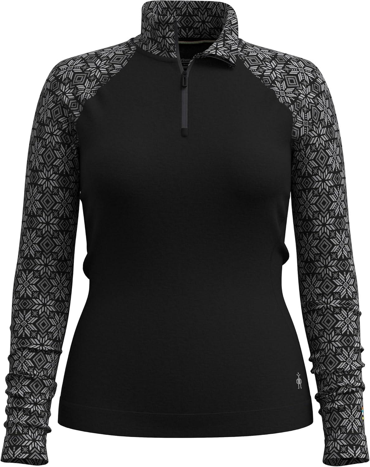 Smartwool Women’s Classic Thermal Merino Base Layer 1/4 Zip(Black Digi Snow)