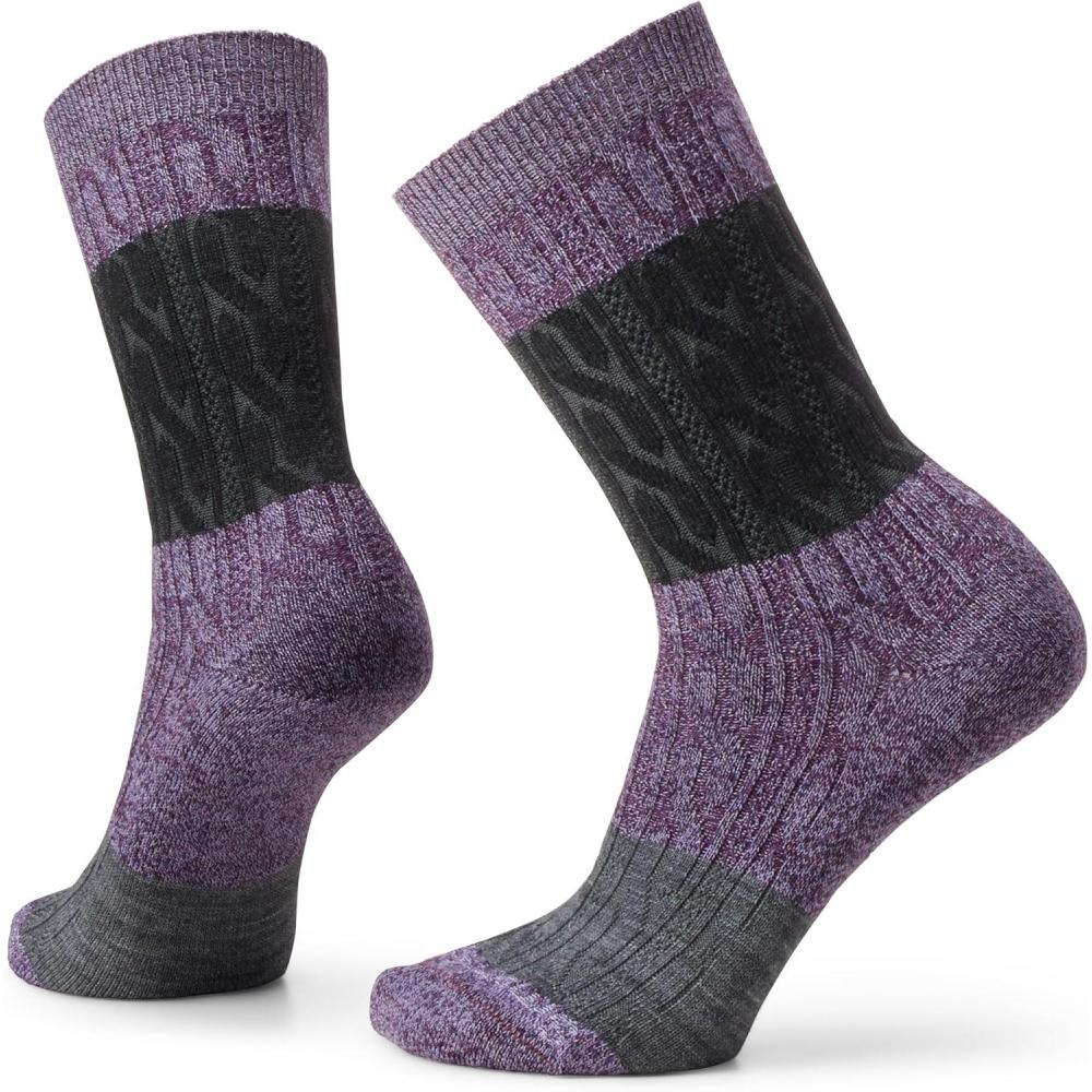 Smartwool Women’s Everyday Color Block Cable Crew Socks(Uviolet-purp Iris Marl)