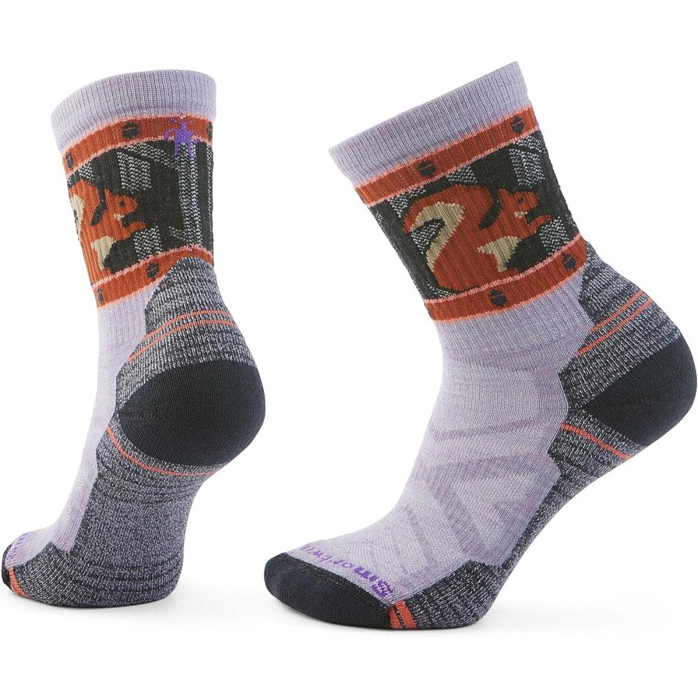Smartwool Women’s Hike Light Cushion Squirrely Print Crew Socks(Purple Eclipse)